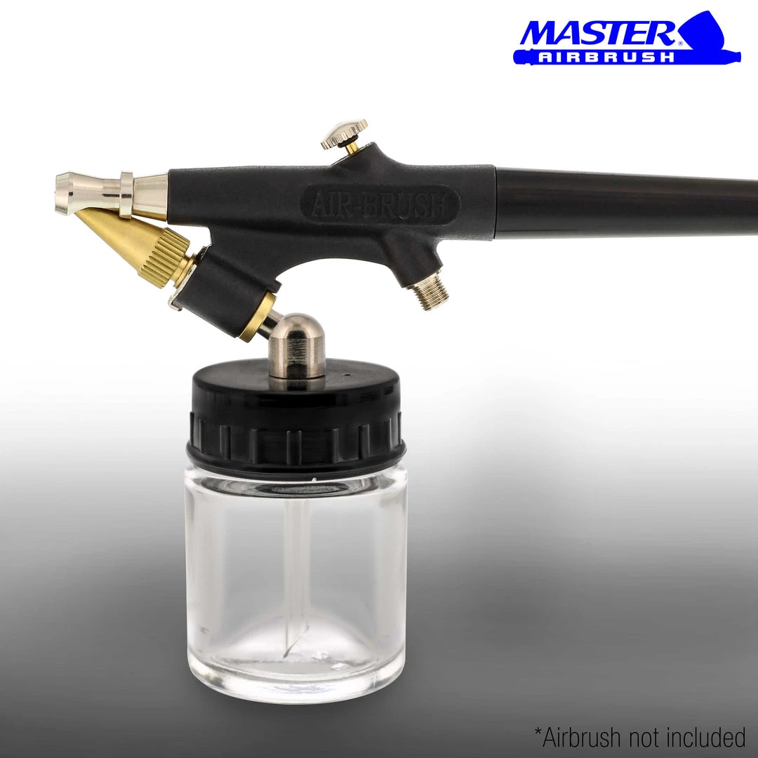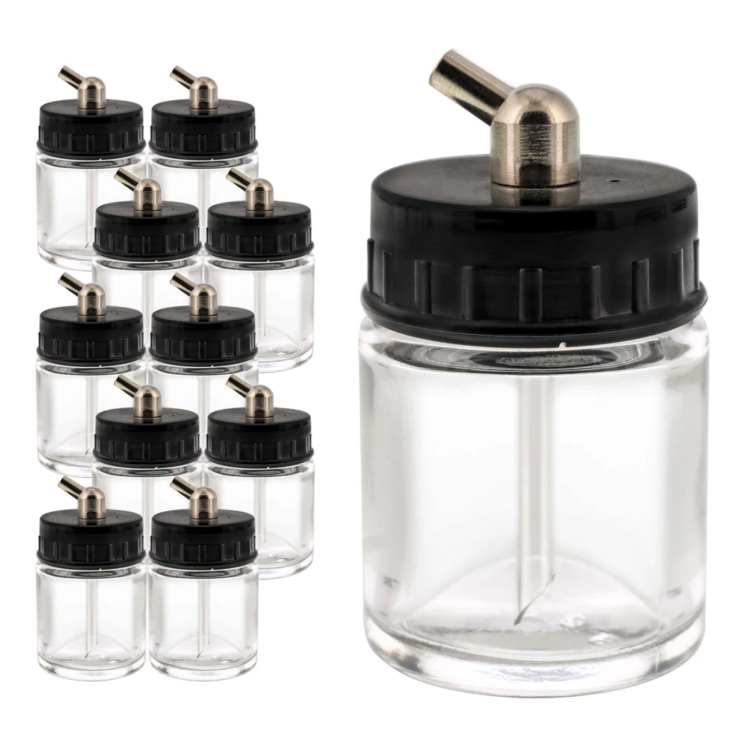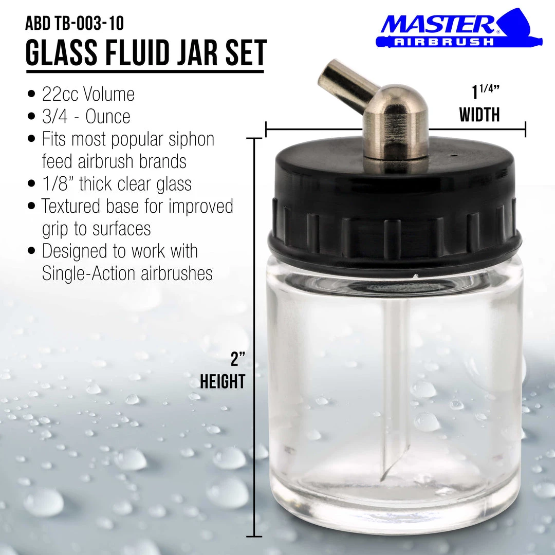 10 Pack Master Airbrush TB-003, 3/4 oz Glass Jar Bottles with 60 degree Down Angle Adaptor Lid Assembly, Single-Action Siphon