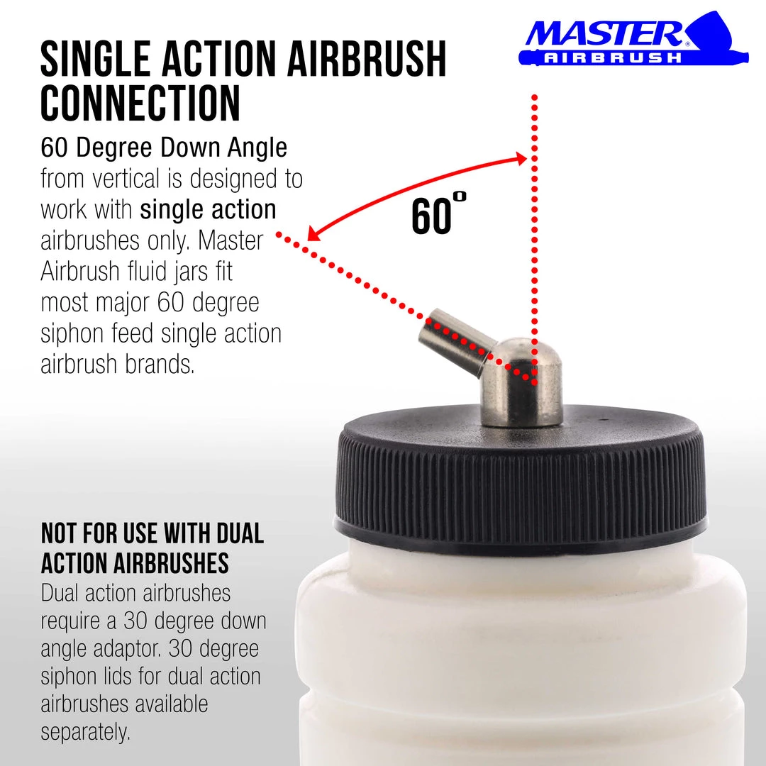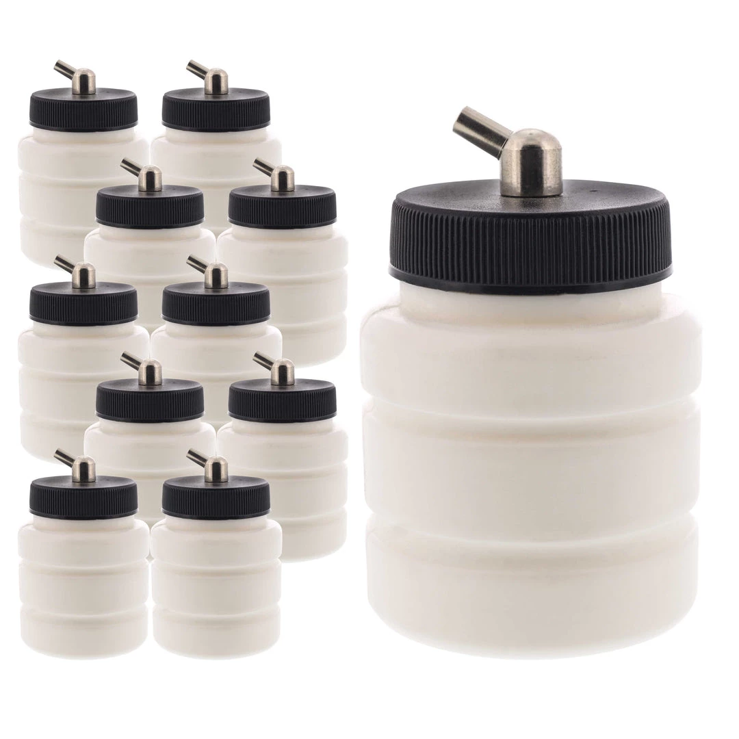 10 Pack Master Airbrush TB-004, 2.7oz Plastic Jar Bottles with 60Â Down Angle Adaptor Lid Assembly, Single-Action Siphon