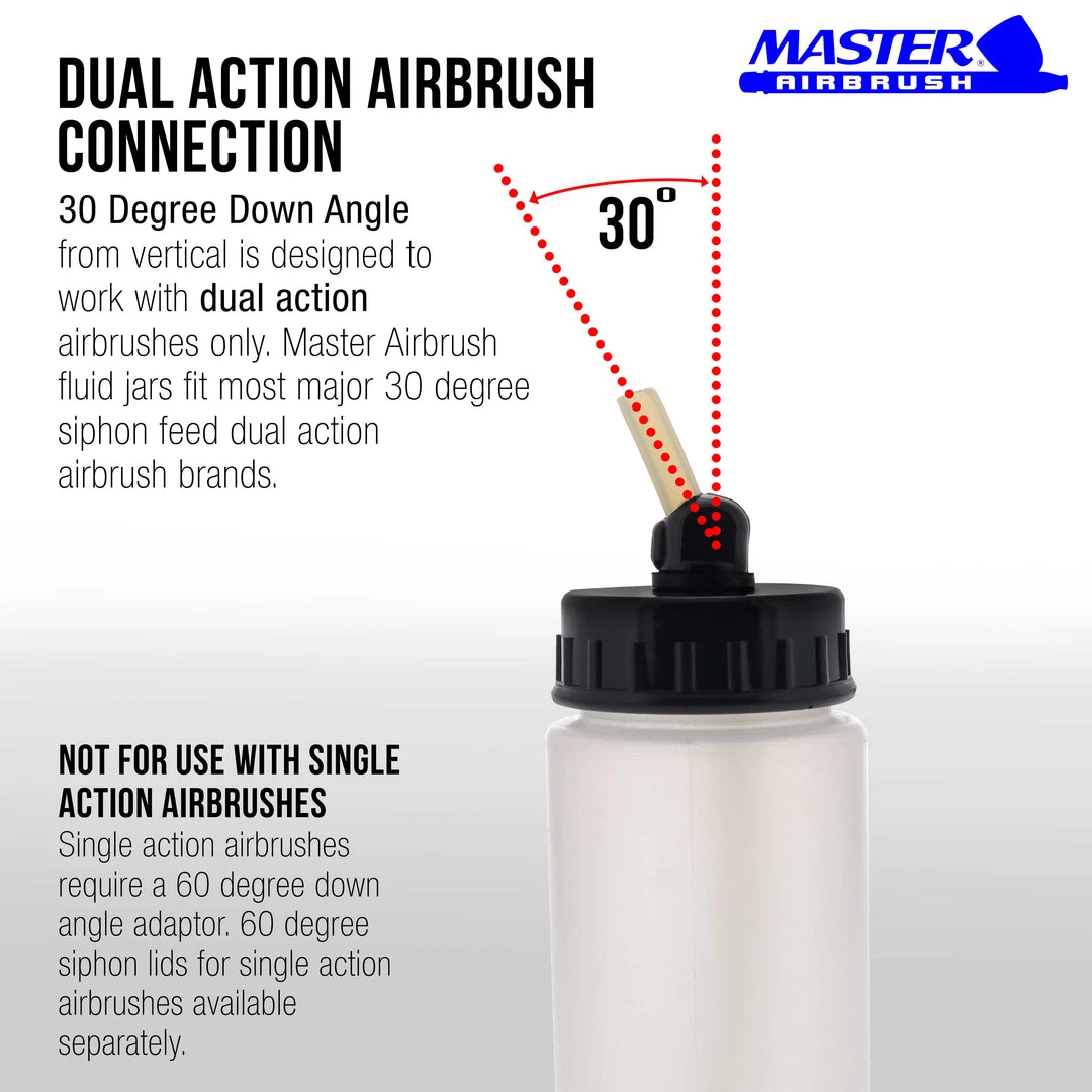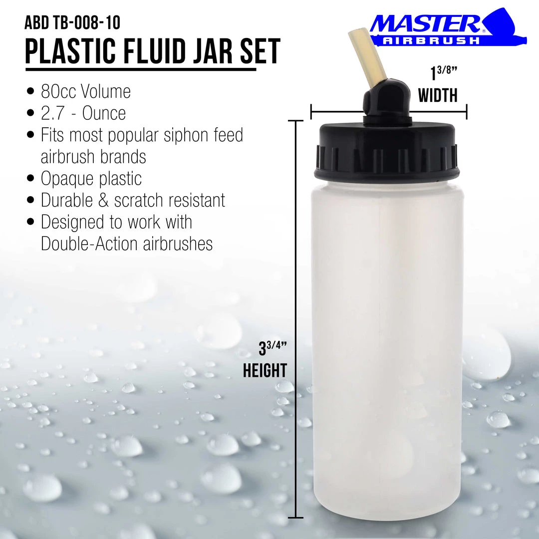 10 Pack Master Airbrush TB-008, 2.7oz Plastic Jar Bottles with 30° degrees Down Angle Adaptor Lid Assembly, Single-Action Siphon