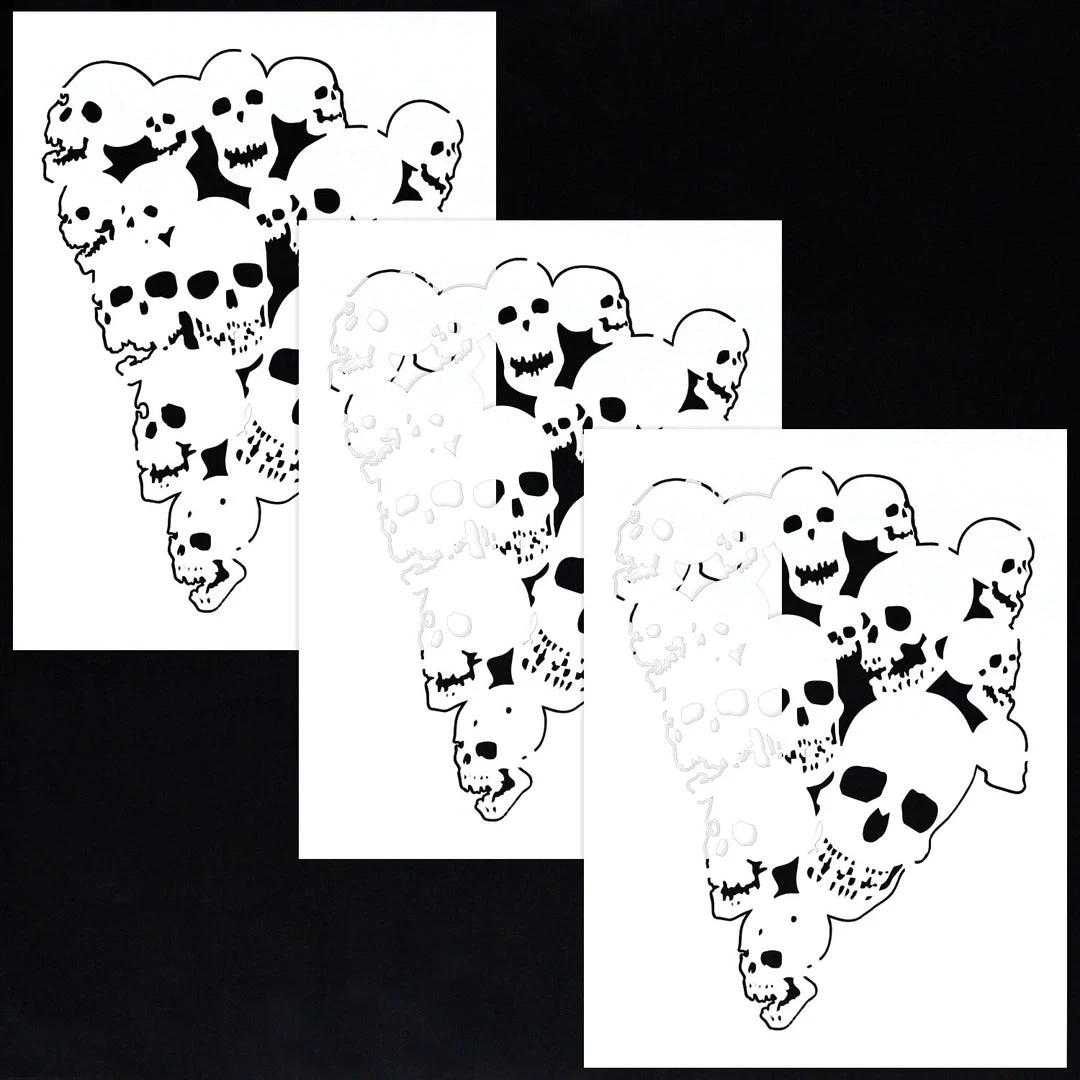 Custom Shop Airbrush Pile of Skulls Stencil Set (3 Pack of Same Skull Design) – Laser Cut Reusable Templates