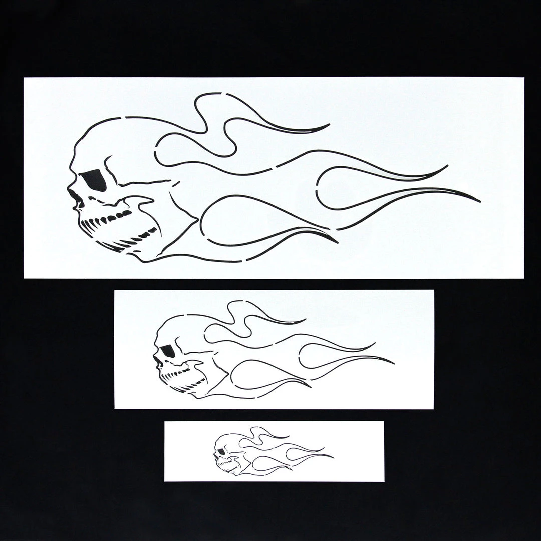 Custom Shop Airbrush Skull Fire Flame Stencil Set (Skull Design #2 in 3 Scale Sizes) – Laser Cut Reusable Templates