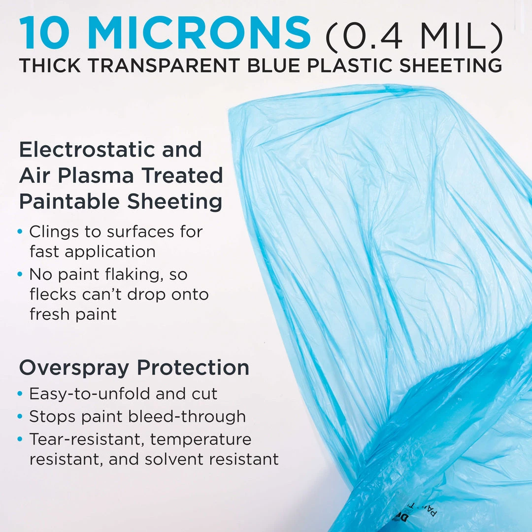 20′ x 250′ Roll of Pure Blue Premium Overspray Paintable Plastic Sheeting – 10 Micron, 0.4 Mil, Protective Masking Film Cover, Auto Painting