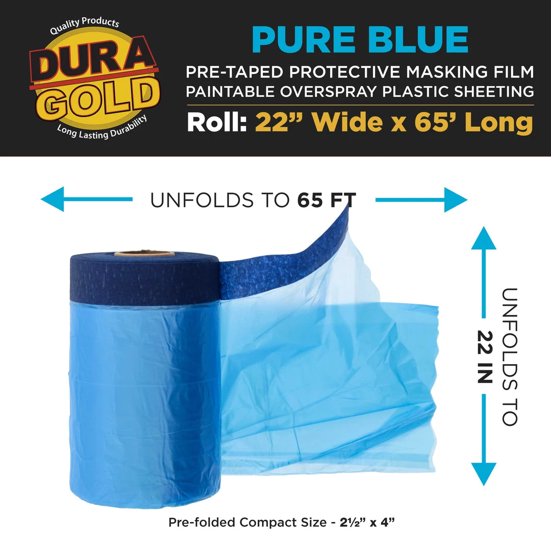 Be the first to review “Dura-Gold 22″ Wide X 65′ Long Roll Pure Blue Pre-Taped Masking Film, Pre-Folded Overspray Paintable Plastic Protective Sheeting, Pull Down Drop Sheet” Cancel reply