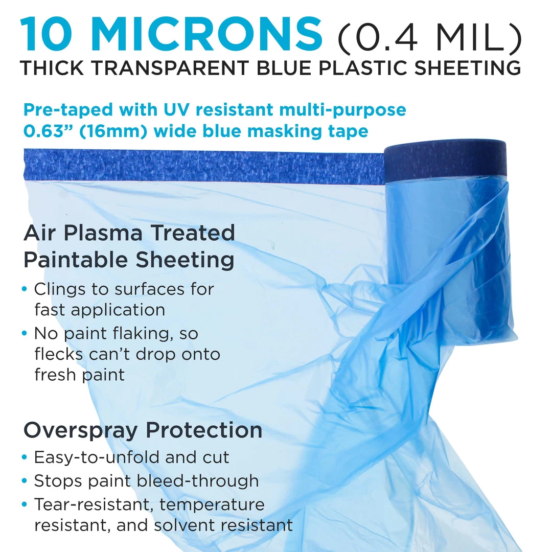 22″ Wide x 65′ Long Roll Pure Blue Pre-Taped Masking Film, Pre-Folded Overspray Paintable Plastic Protective Sheeting, Pull Down Drop Sheet