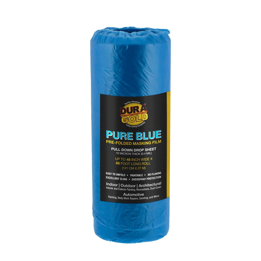 Be the first to review “Dura-Gold 48″ Wide X 88′ Long Roll Of Pure Blue Pre-Folded Masking Film, 0.4 Mil Overspray Paintable Plastic Protective Sheeting, Pull Down Drop Sheet” Cancel reply
