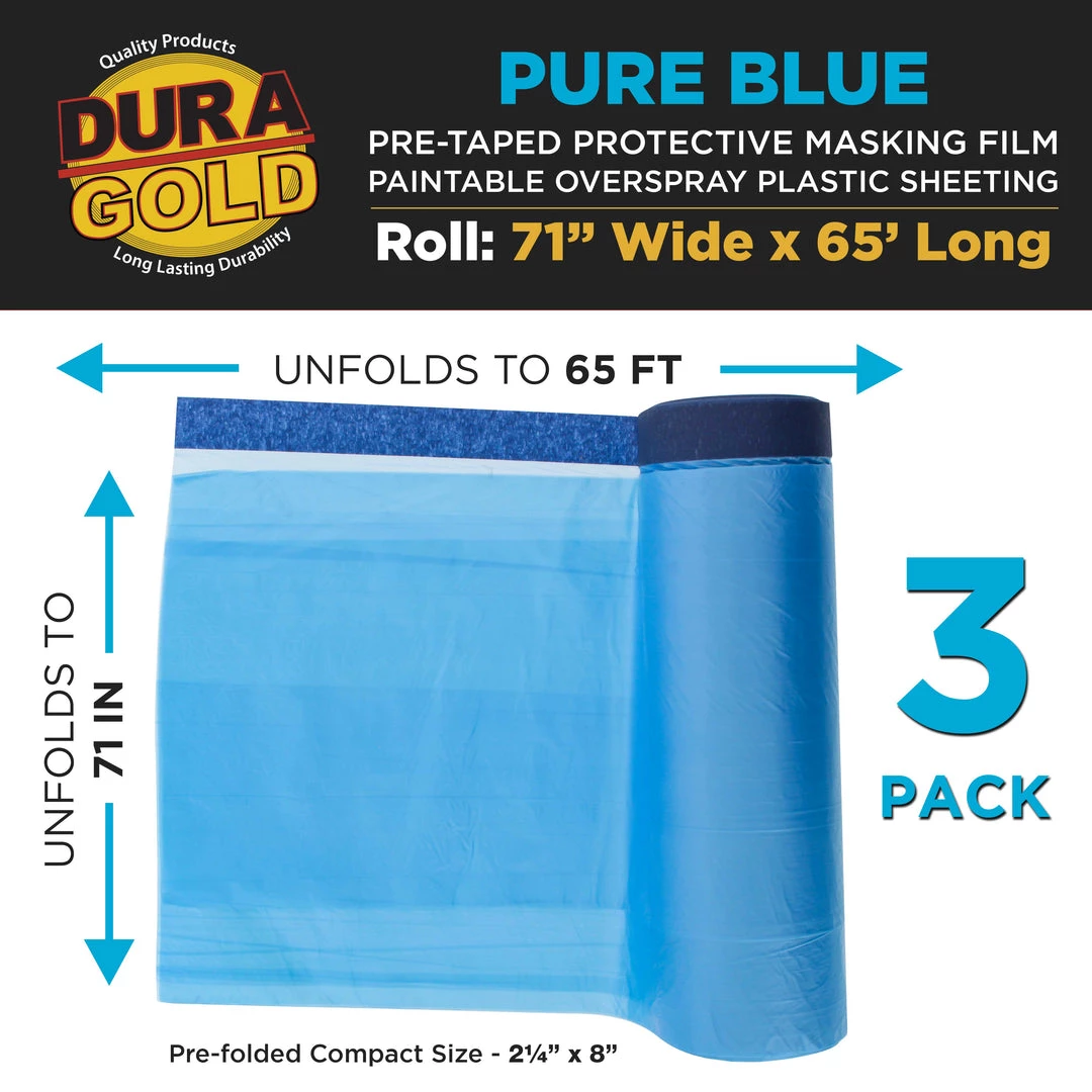 Be the first to review “Dura-Gold 71″ Wide X 65′ Long Roll Of Pure Blue Pre-Taped Masking Film, 3 Pack – Overspray Paintable Plastic Protective Sheeting, Pull Down Drop Sheet” Cancel reply