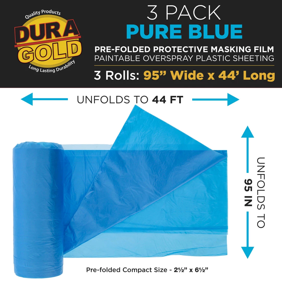 Be the first to review “Dura-Gold 95″ Wide X 44′ Long Roll Of Pure Blue Pre-Folded Masking Film, 3 Pack – Overspray Paintable Plastic Protective Sheeting, Pull Down Drop Sheet” Cancel reply