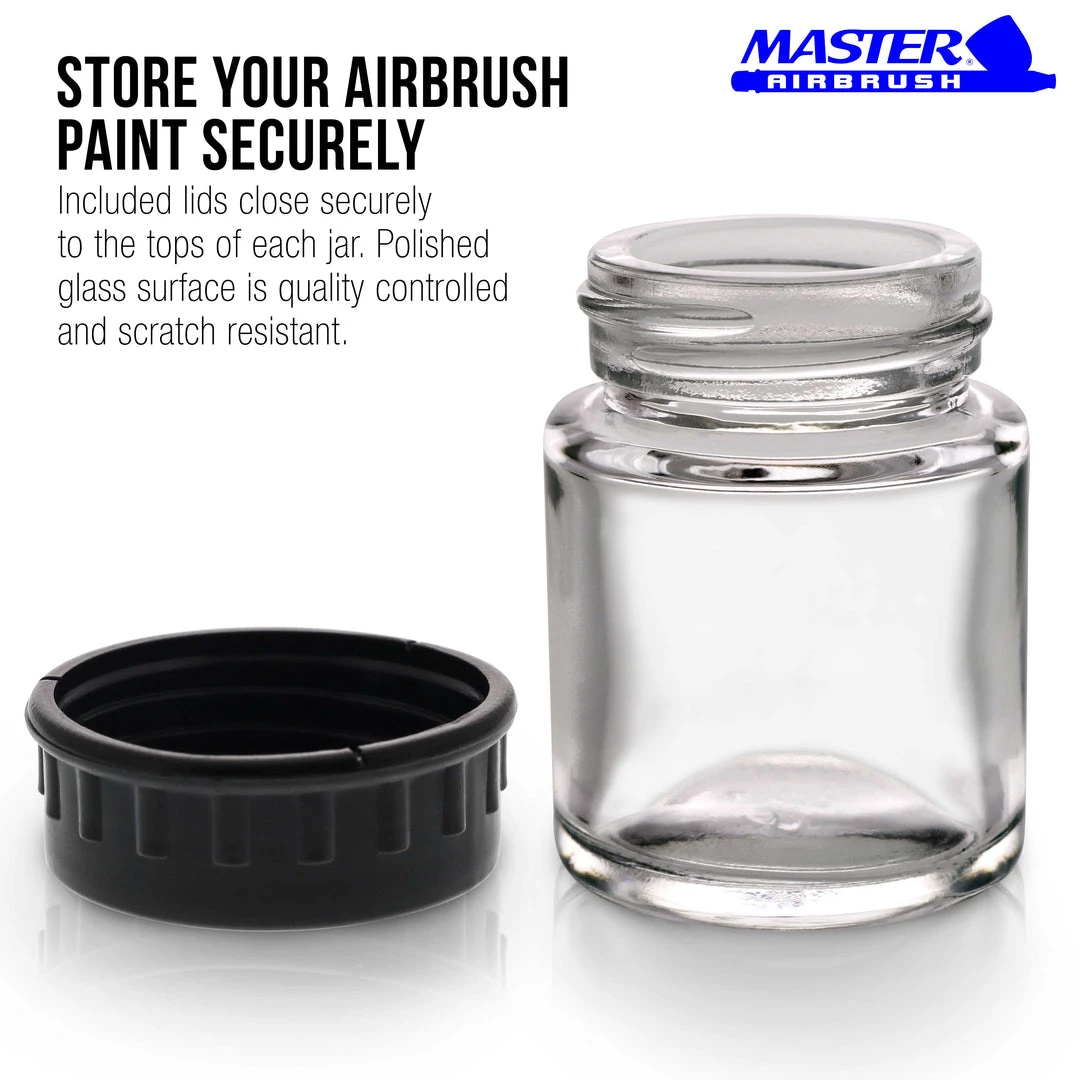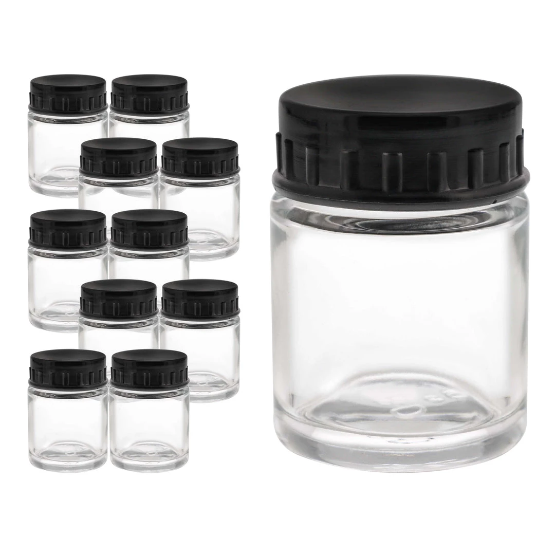 10 Pack TB-001 Empty 3/4 Ounce (22cc) Glass Jar Bottles with Plastic Lids, Paint Storage Bottles, Jars Screw Into Siphon Feed Airbrush Lid Assemblies