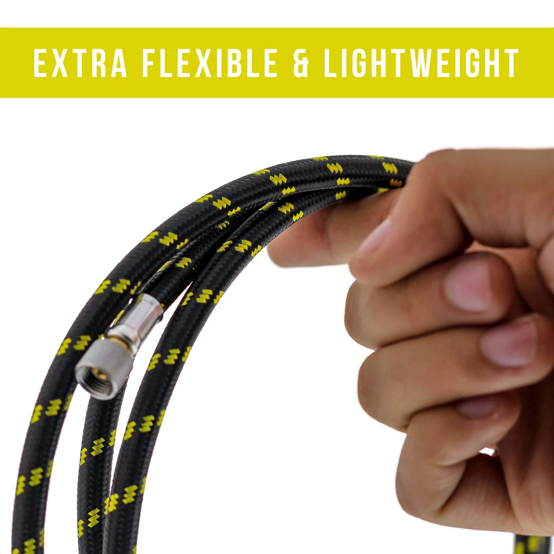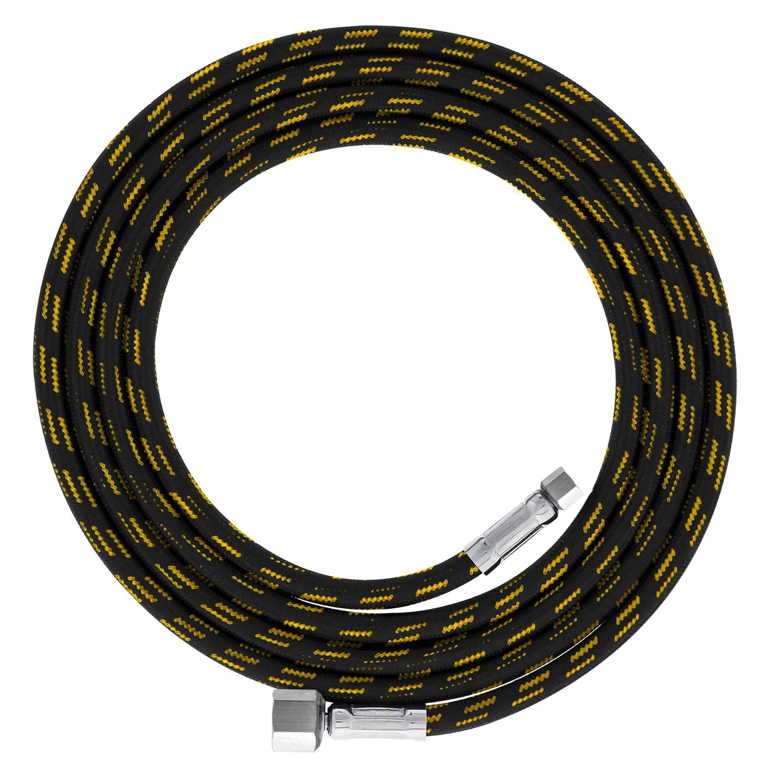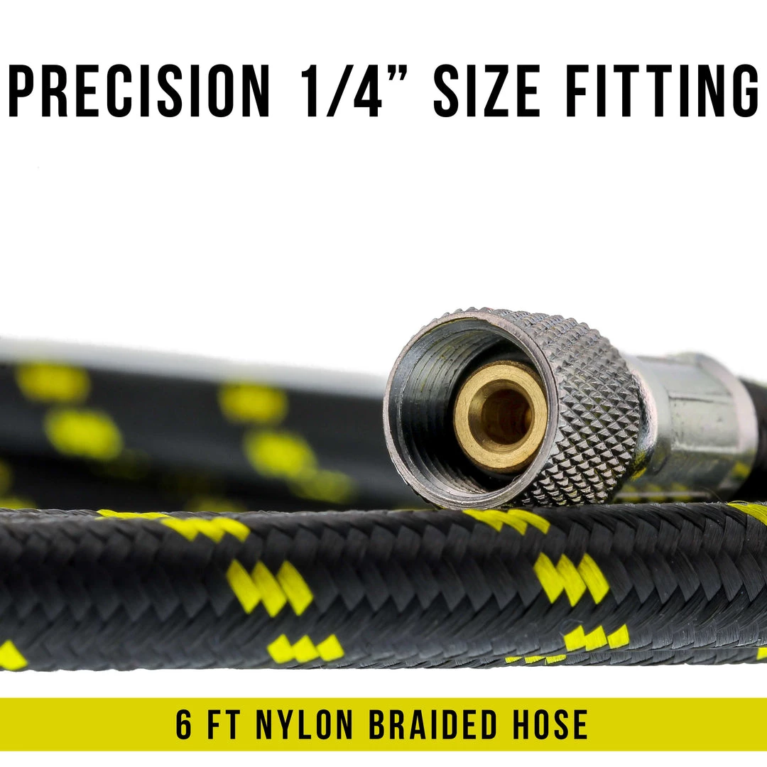 Premium 6 Foot Nylon Braided Airbrush Hose with Standard 1/8″ Size Fitting on One End and a 1/4″ Size Fitting on the Other End (Hose color may vary)