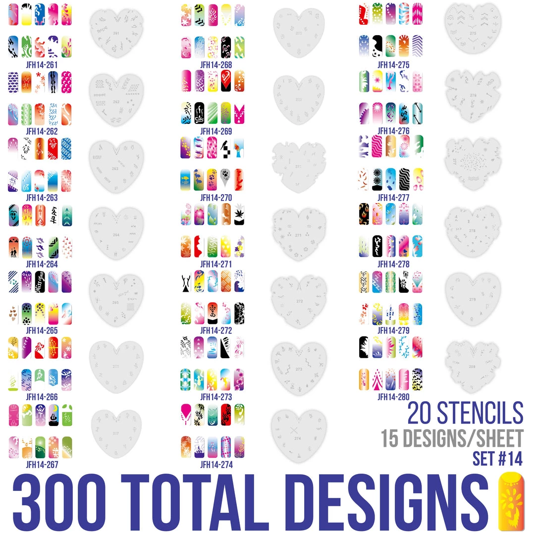Airbrush Nail Stencils – Design Series Set # 14 Includes 20 Individual Nail Templates with 16 Designs each for a total of 320 Designs of Series #14