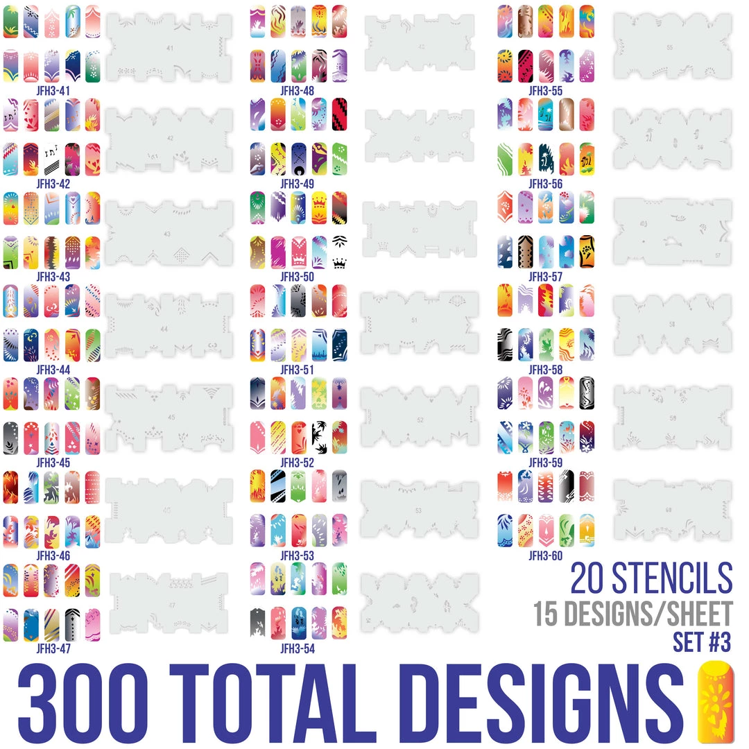 Airbrush Nail Stencils – Design Series Set # 3 Includes 20 Individual Nail Templates with 12 Designs each for a total of 240 Designs of Series #3