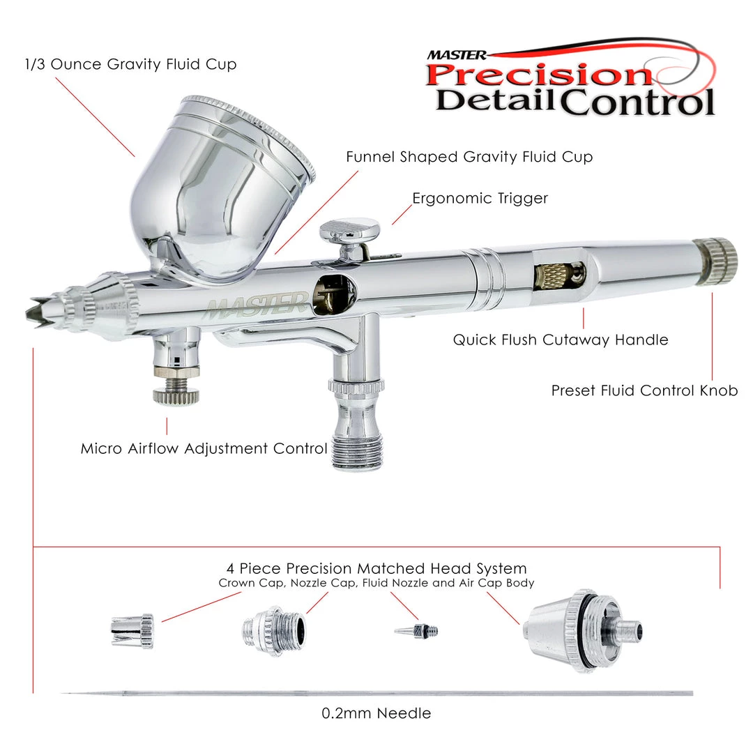 Master High Precision G43 Dual-Action Gravity Feed Airbrush, 0.2 mm Tip, 1/3 oz Bowl Cup, Air Control