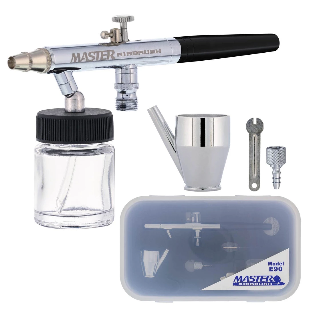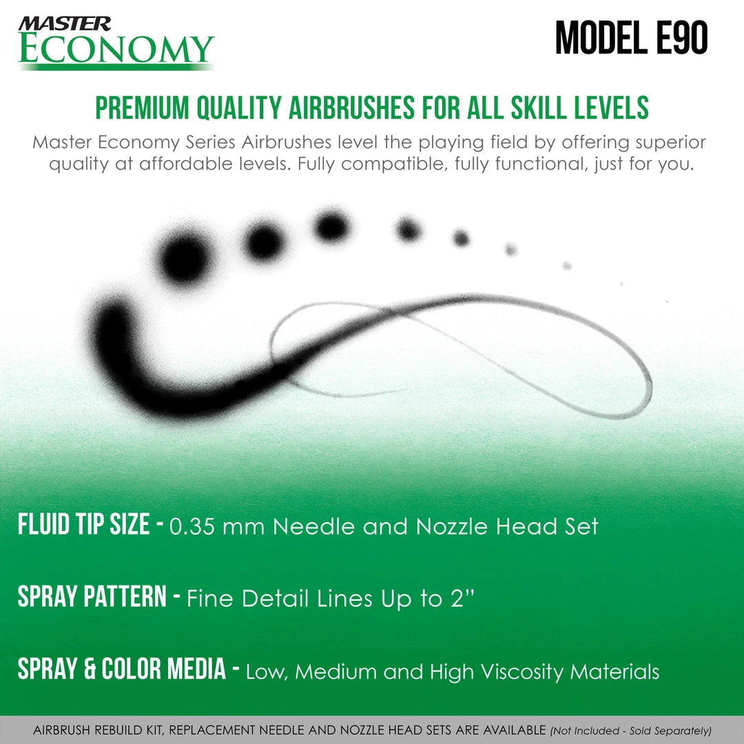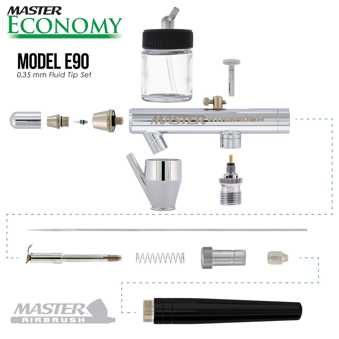 Master Performance E90 Multi-Purpose Precision Dual-Action Siphon Feed Airbrush with Black Handle, 0.35 mm Tip, 3/4 oz Bottle