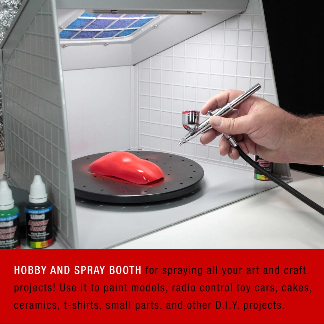 Portable Hobby Airbrush Paint Spray Booth Kit with LED Lights, Turntable, Powerful Exhaust Fan with Filter & Extension Hose – Spray Painting Projects