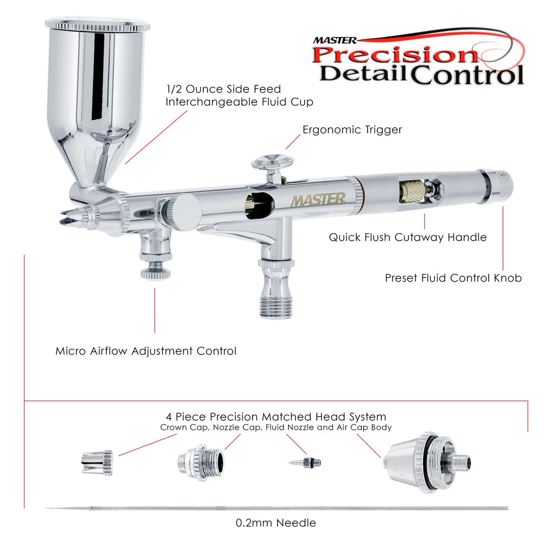 SB86 High Precision Detail Control Dual-Action Side Feed Airbrush Set Kit with a 0.2mm Fluid Tip, 1/2 oz. Gravity Cup