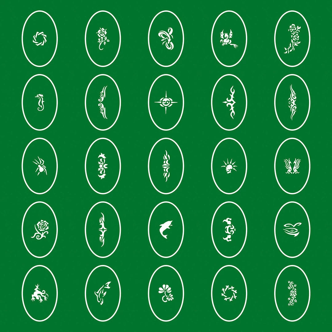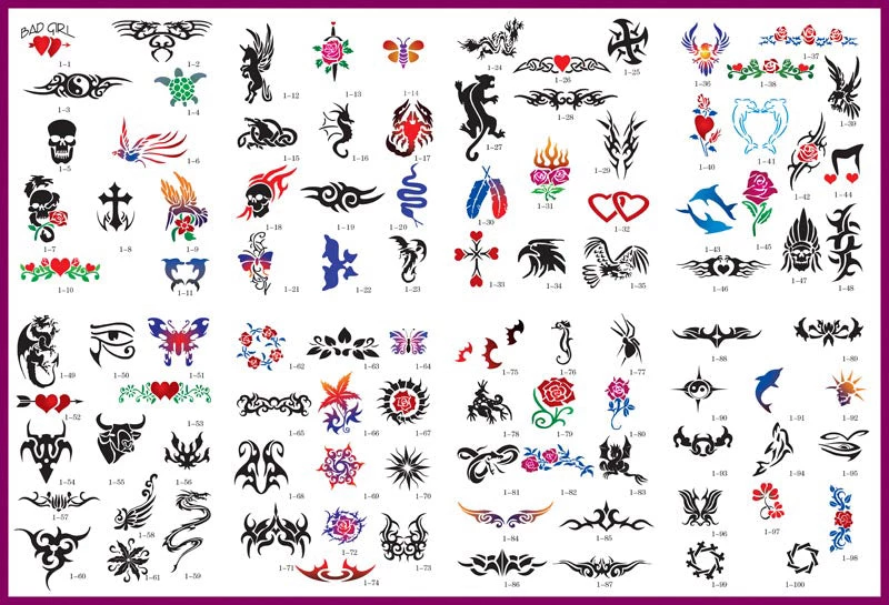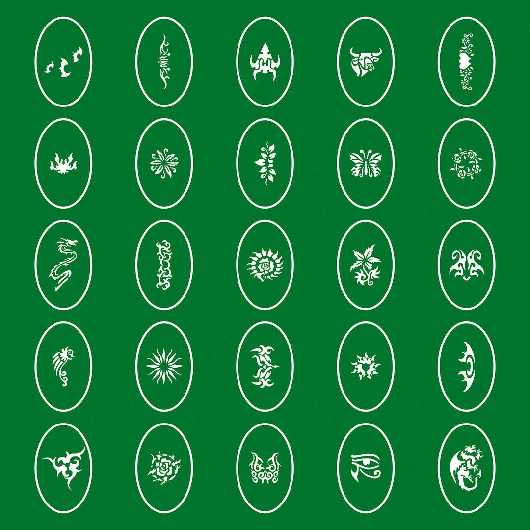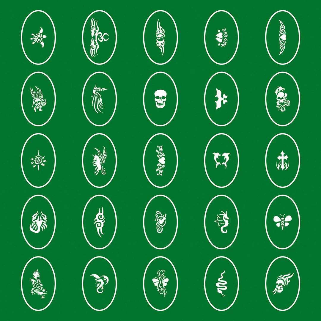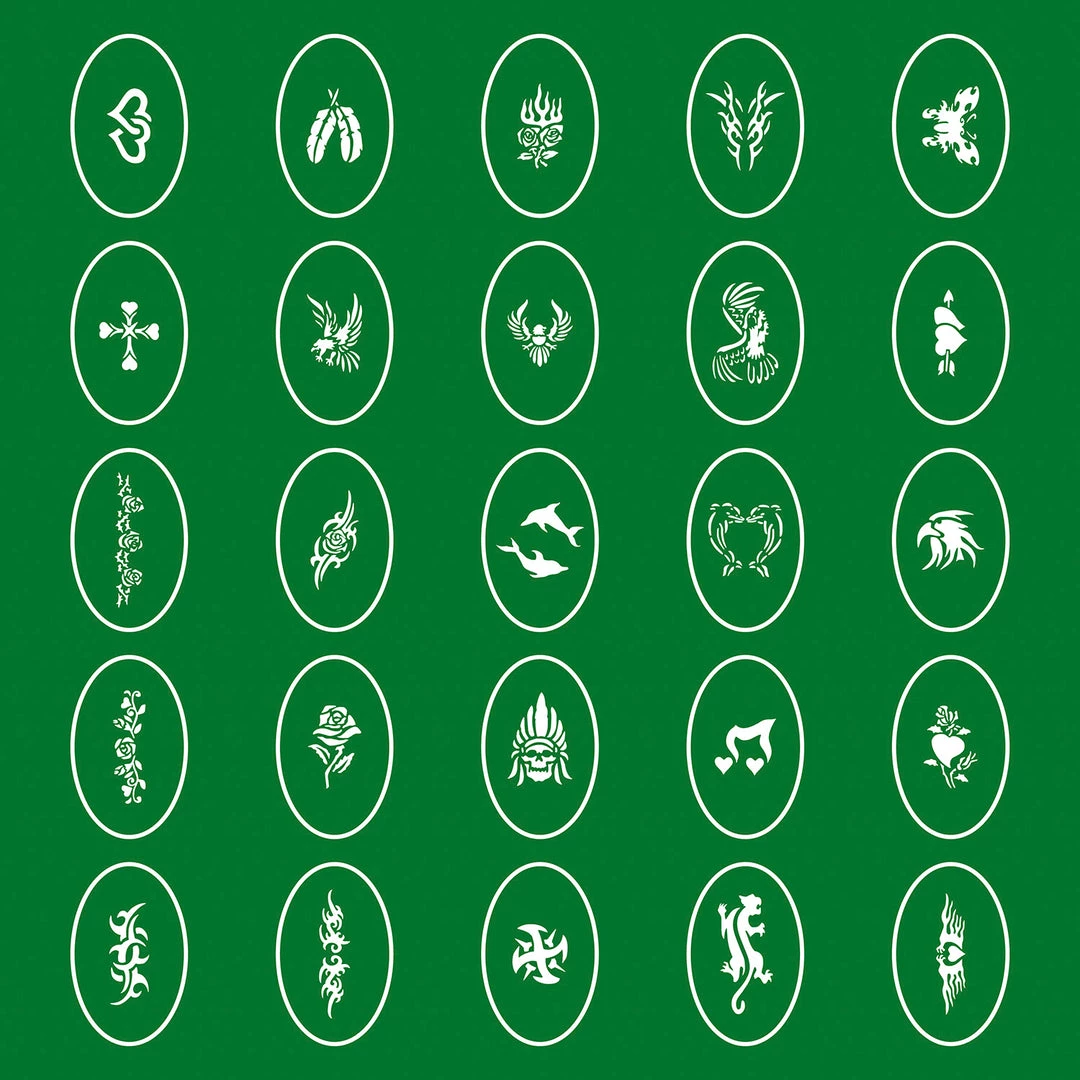 Temporary Tattoo Stencils Booklet Set 1 with 100 Different Self-Adhesive Reusable Stencil Designs
