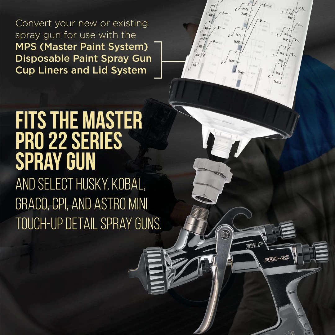 Master Paint System MPS Spray Gun Cup Adapter 882 – Converts Master 22 HVLP Touch Up, Select Husky Spray Guns for Use with MPS Disposable Cup System