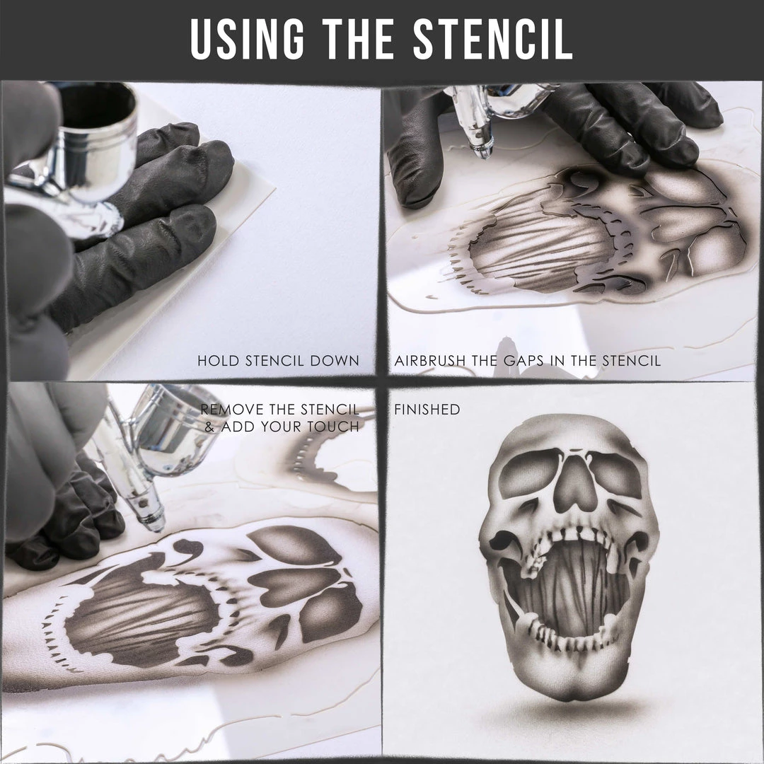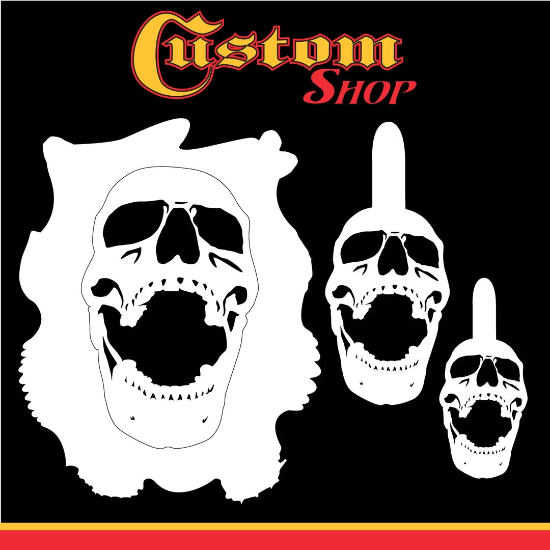 Custom Shop Airbrush Stencil Skull Design Set #8 (3 Different Scale Sizes) – 3 Laser Cut Reusable Templates