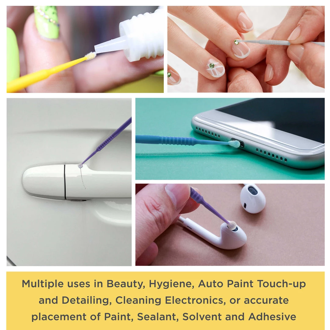 TCP Global 400 Eyelash Extension Micro Brushes – Brush Applicator Tip Sizes 1.0 mm Superfine White, 1.5 mm Fine Yellow, 2.0 mm Medium Blue & Purple
