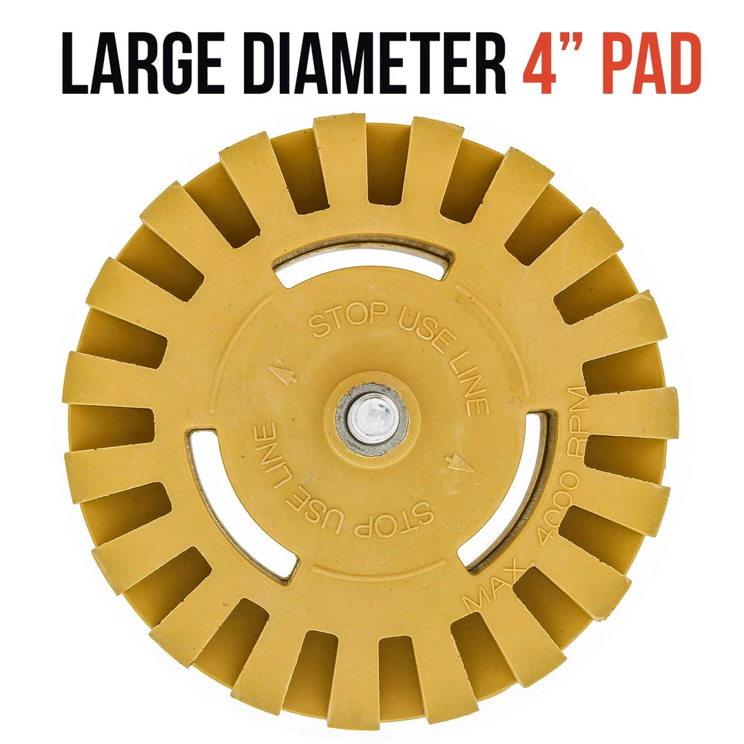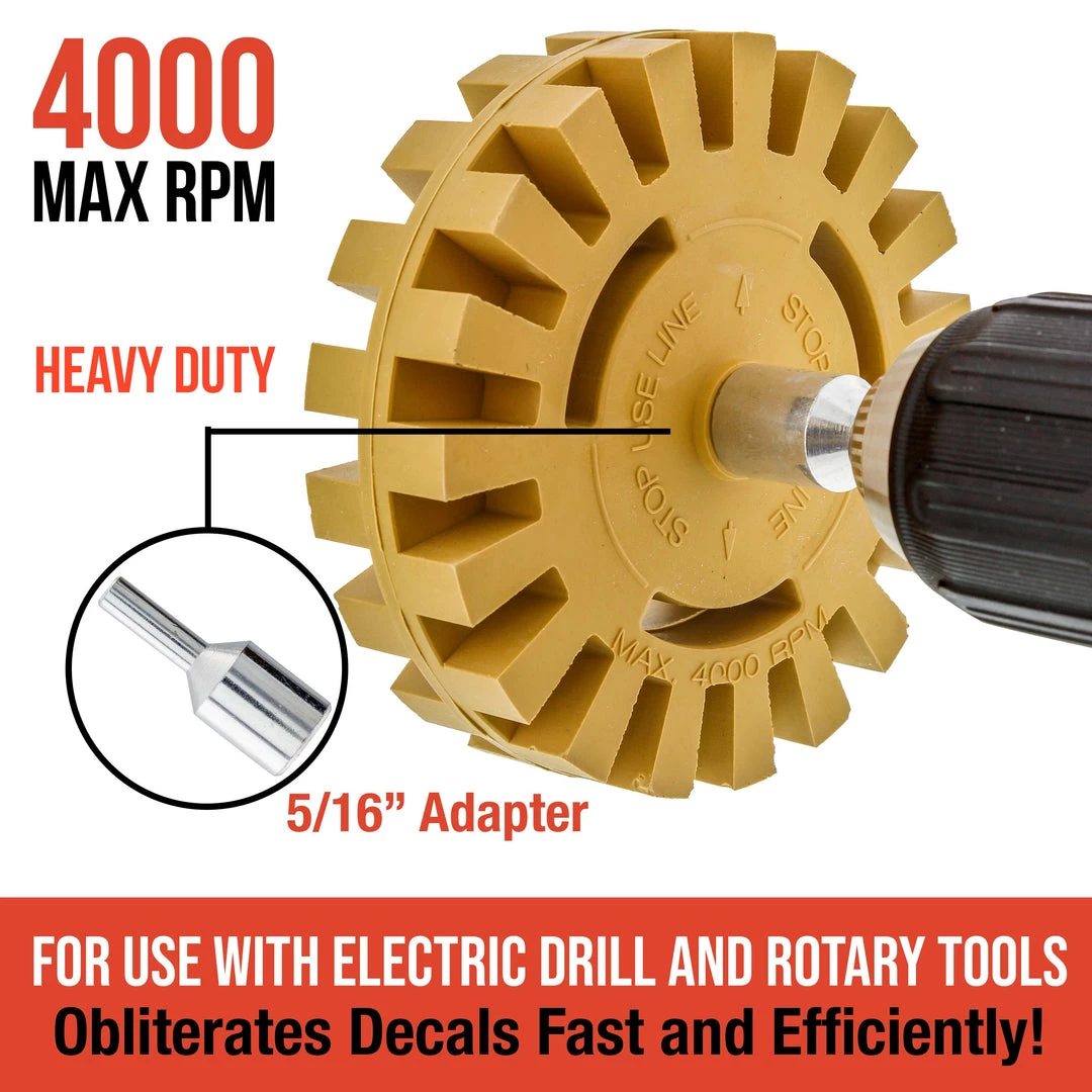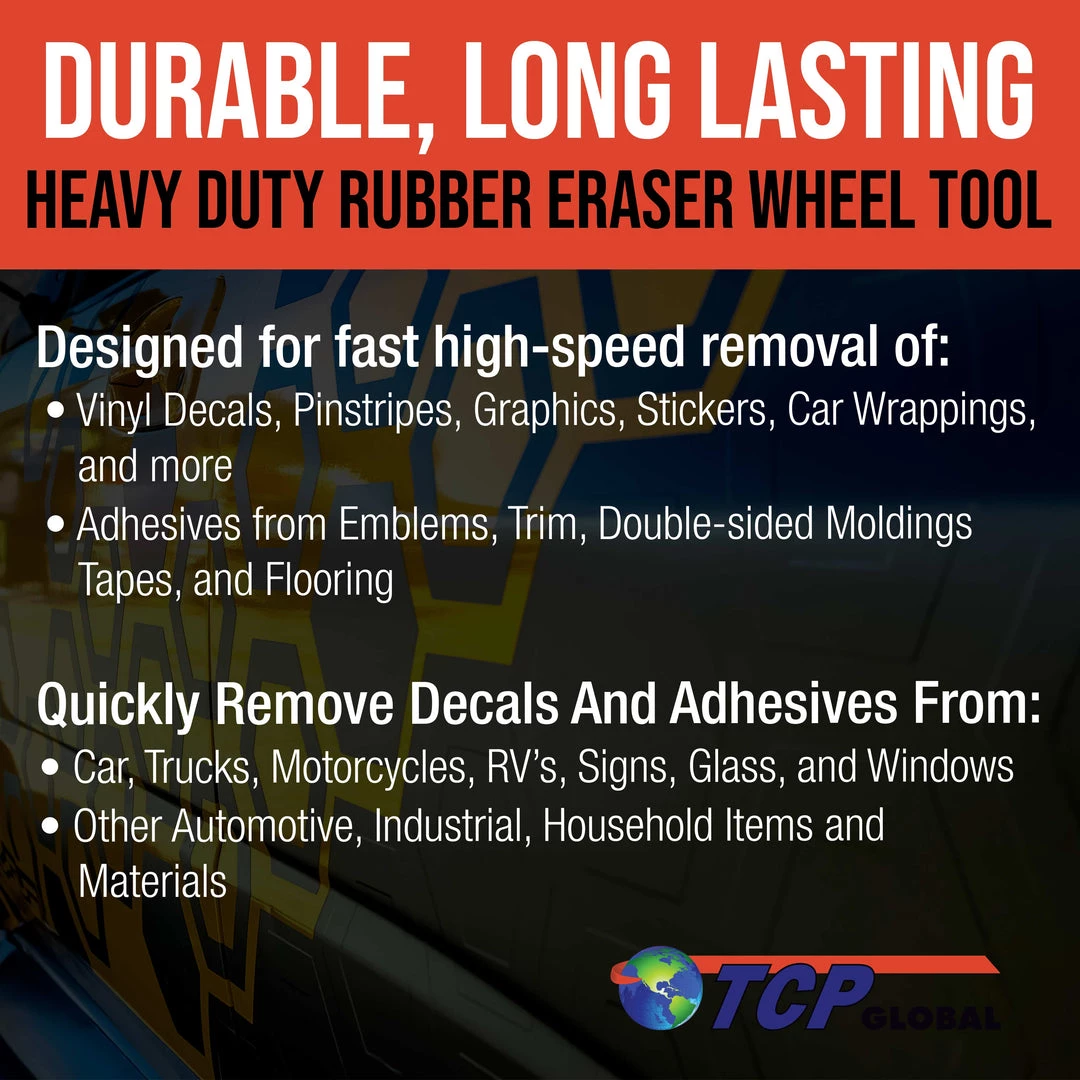 TCP Global Heavy Duty Rubber Eraser Wheel, 4” Slotted Edge Pad with Drill Adapter – Adhesive Remover Tool, Remove Vinyl Decals, Pinstripes, Graphics