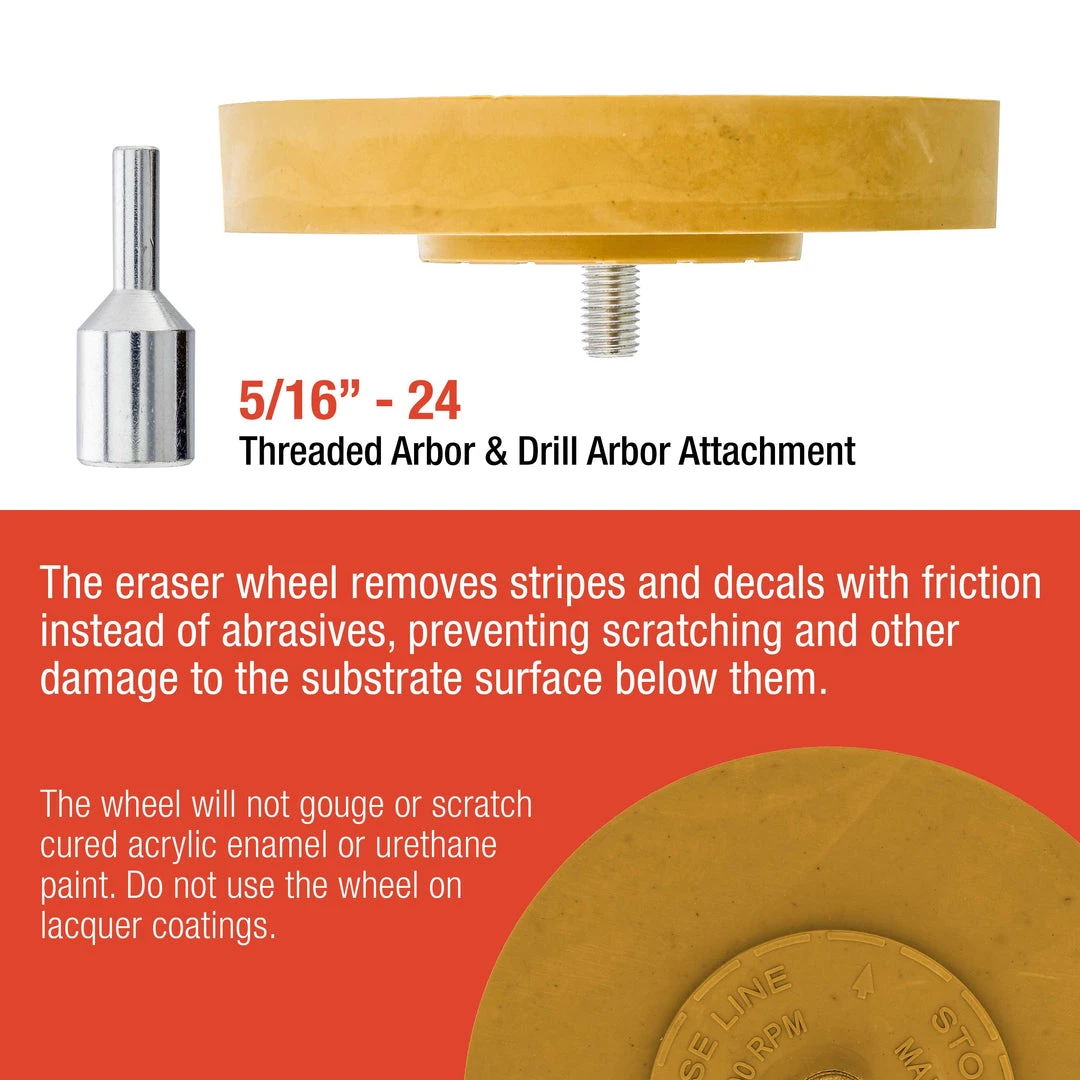 Rubber Eraser Wheel with Drill Adapter, Adhesive Remover Tool, Removes Vinyl Decals, Pinstripes Stripes, Stickers, Graphics Removal