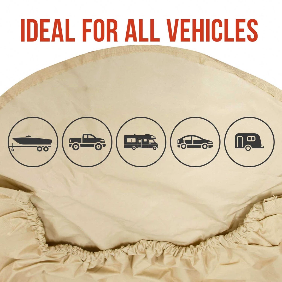 Set of 4 Oxford Waterproof Canvas Wheel Tire Covers, Fits from 27″ up to 29″ Diameter Tire Sizes